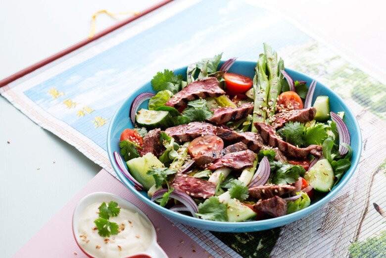 Bữa trưa: Gồm một phần nhỏ rau xanh kết hợp với thịt bò. Ưu tiên các cách chế biến đơn giản như luộc, áp chảo ít dầu và nêm nhạt để hạn chế muối.