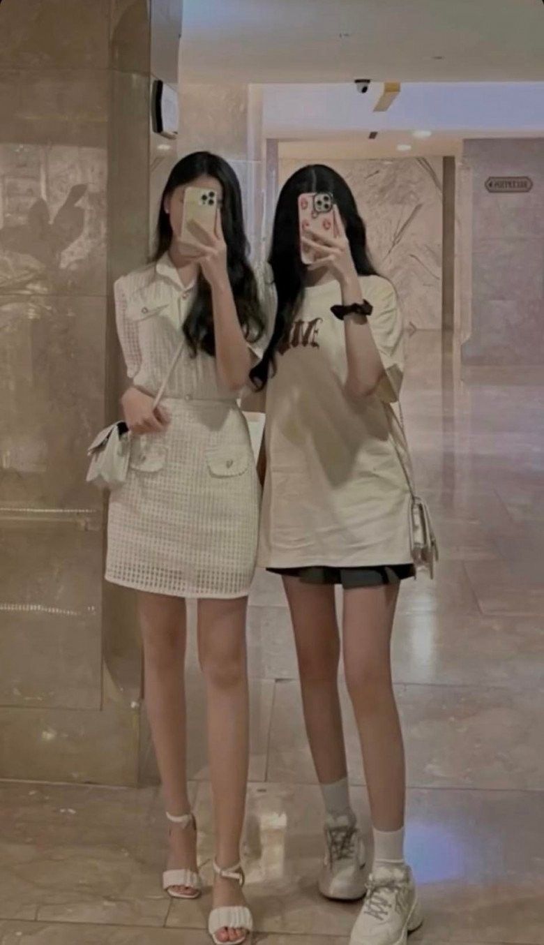 Trong hình, Lọ Lem và Hạt Dẻ đều diện trang phục cơ bản, xoã tóc dài đen nhánh và còn chọn kiểu chụp che giấu đi visual vốn xinh đẹp nức tiếng. Thế nhưng, bù vào đó, thứ chiếm sóng của bức ảnh lại là 2 đôi chân thon dài, đẹp tựa búp bê sống của cặp chị em.