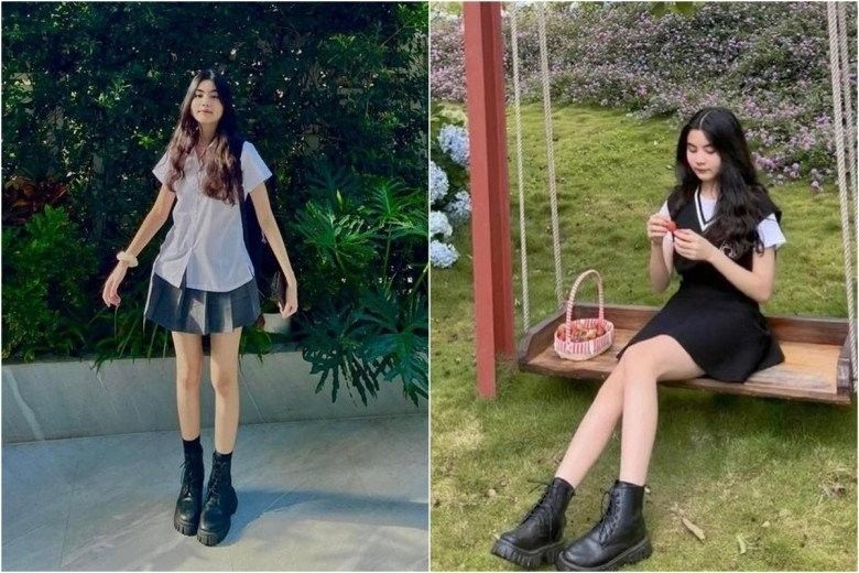 Mỗi khi mặc váy ngắn điệu đà, đôi chân đẹp chuẩn mẫu lại được dịp phô diễn, không hề thua kém bất kì đàn chị người mẫu, Hoa hậu nào.