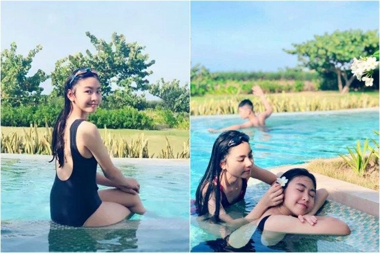 Ngoài ra, 2 cô con gái nhà Quyền Linh còn yêu thích bơi lội.