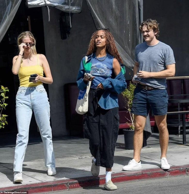 Ra phố hẹn hò, cô nàng cựu sinh viên Harvard để tóc xoăn xù buông dài màu nâu và diện trang phục đơn giản với áo phông sát nách, quần ống rộng và áo sơ mi khoác ngoài khỏe khoắn. Tuy nhiên, outfit này chẳng có gì đáng nói nếu Malia không "thả rông".