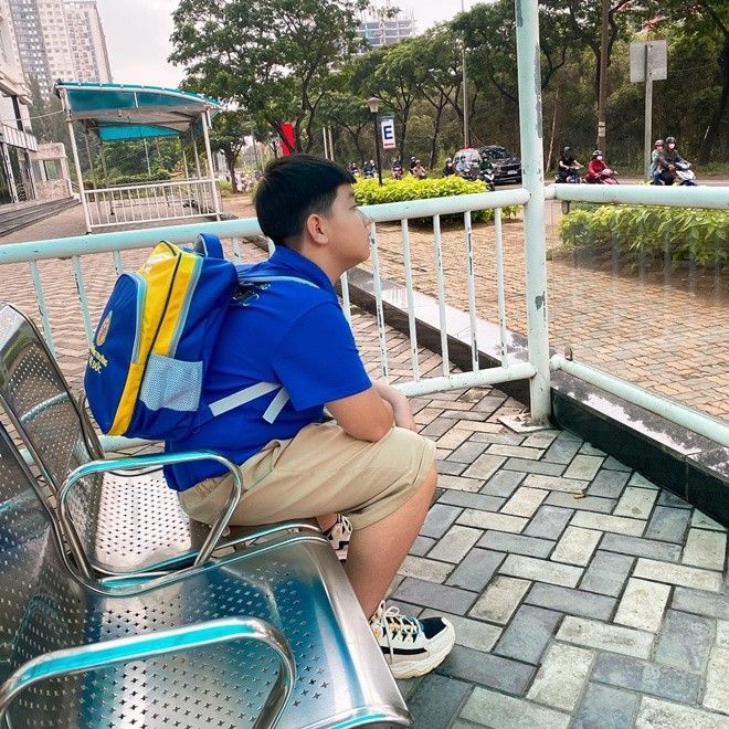 Bởi vậy, chắc chắn chiếc cặp sách Cà Pháo đeo trên vai cũng có kích thước "không phải dạng vừa". Hình ảnh con trai Lê Phương "cõng" chiếc cặp to tướng khiến nhiều ông bố bà mẹ đồng cảm, dù thương nhưng biết rằng đó là hành trang cần thiết cho con trẻ.