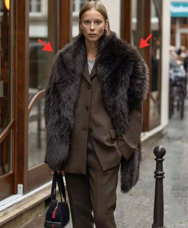 Chiếc áo khoác với chi tiết lông thú trông sang trọng hơn hẳn.