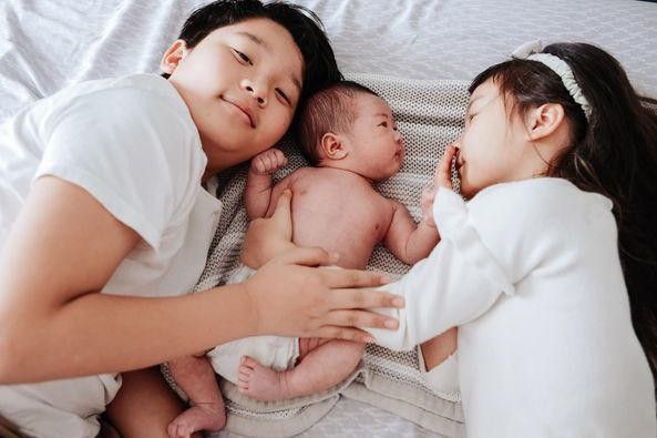 Gia đình Hoàng Bách mới đón thêm thành viên thứ 4 và cậu cả rất hạnh phúc khi được chăm em.