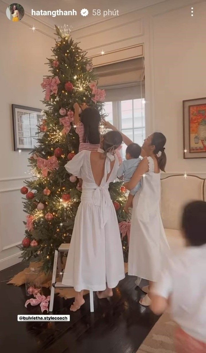Cả Richard, Chloe và Mason cùng đang giúp mẹ Hà trang trí cây thông Noel để chuẩn bị cho Giáng sinh 2022 sắp tới. Mason còn nhỏ nên được mẹ Tăng Thanh Hà bế trên tay để trang trí trên cao còn hai anh chị lớn là Richard và Chloe có thể tự trang trí phía dưới. Dù không rõ mặt nhưng diện mạo cùng vóc dáng của hai con lớn nhà Louis Nguyễn ngay lập tức được nhiều người khen ngợi bởi cao trộm vía.