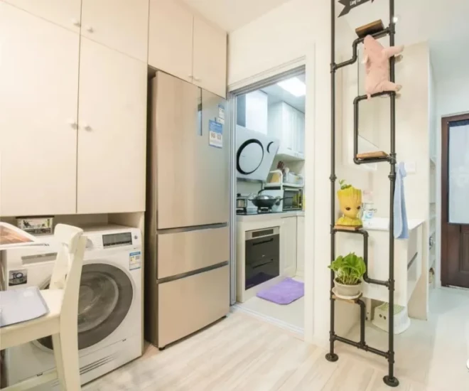 Thứ ba, thiết bị nhà bếp ngày càng nhiều nhưng diện tích lại có xu hướng thu hẹp. Việc đặt thêm máy giặt sẽ khiến không gian vốn đã chật càng thêm bí bách. Nếu như tủ lạnh đặt trong bếp còn có chút tiện lợi, thì máy giặt đặt ở đây gần như chỉ mang lại bất tiện.