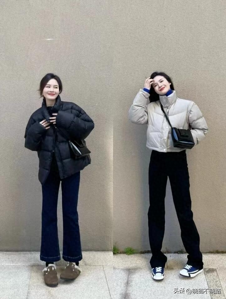 Vào mùa đông, áo phao dáng rộng là lựa chọn quen thuộc nhờ khả năng giữ ấm và sự thoải mái khi mặc. Tuy nhiên, nếu phối cùng quần dáng rộng, vóc dáng sẽ trông tròn trịa từ trên xuống dưới. Chuyển sang quần legging, quần skinny jeans sẽ giúp làm nổi bật đường nét đôi chân, mang lại cảm giác thon gọn và cao ráo hơn.