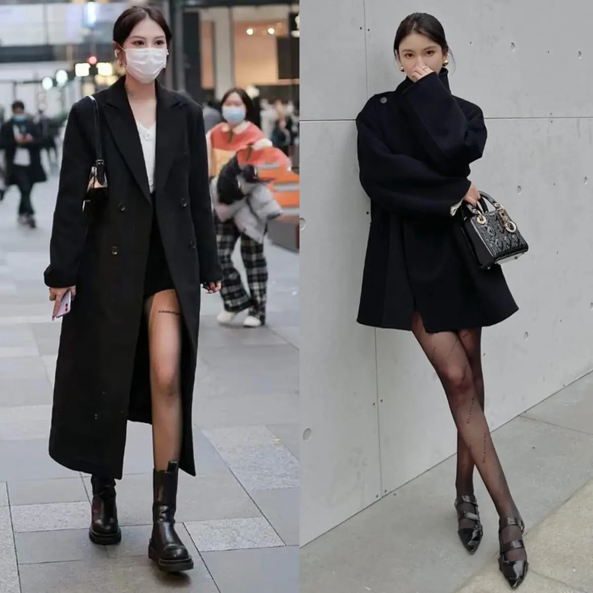 2. Áo khoác dài + tất đen: Dễ gây phản cảm