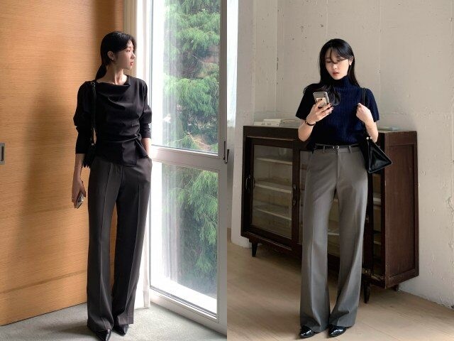 Quần âu ống suông mang lại vẻ ngoài chỉn chu nhưng vẫn giúp cải thiện tỷ lệ cơ thể. Phần ống thẳng, rủ nhẹ giúp tạo cảm giác đôi chân dài và thon hơn.