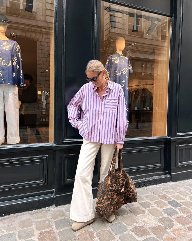 Trong danh sách những item vừa thoải mái vừa che dáng hiệu quả, áo sơ mi oversized dài tay luôn giữ vững vị trí hàng đầu. Thiết kế rộng rãi với phần tay buông nhẹ giúp khéo léo giấu đi bắp tay to mà không tạo cảm giác bí bách, đặc biệt phù hợp trong những ngày Hè. Không chỉ dừng lại ở tính ứng dụng cao, kiểu áo này còn mang đến vẻ ngoài phóng khoáng, hiện đại, dễ dàng biến hóa từ phong cách năng động thường ngày đến thanh lịch nơi công sở. Đây chính là “cứu cánh” hoàn hảo cho những ai muốn mặc đẹp mà vẫn tự tin với vóc dáng của mình.