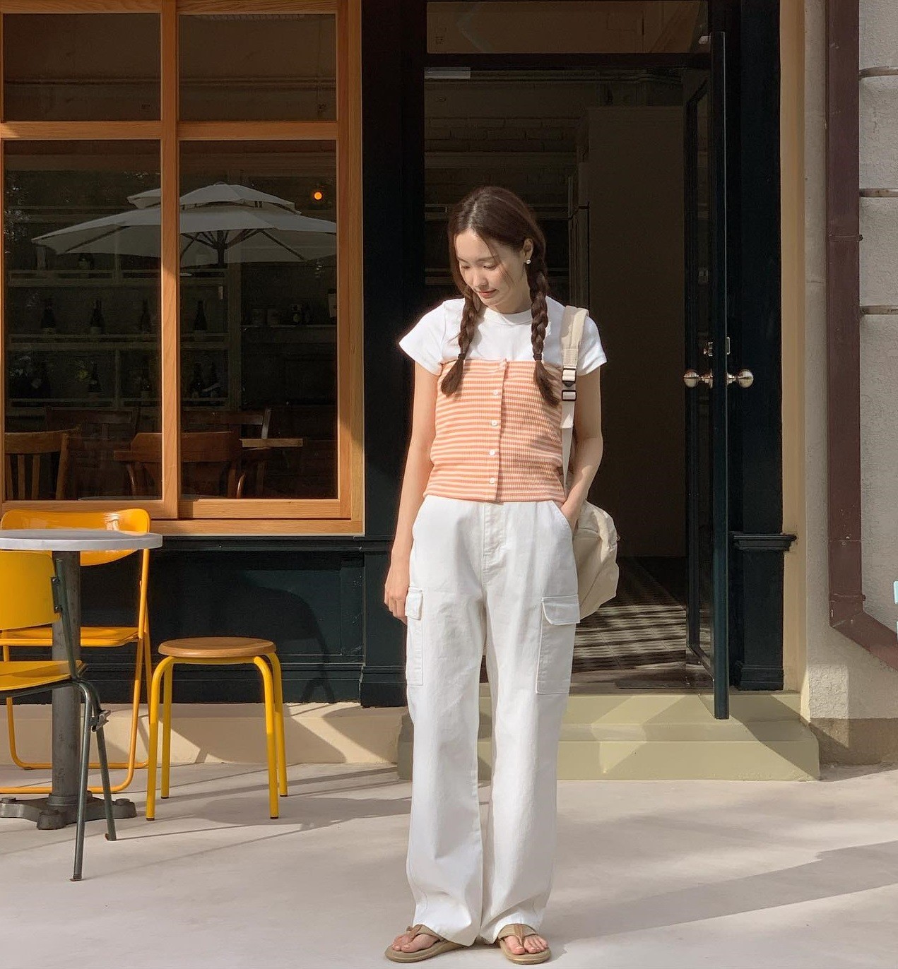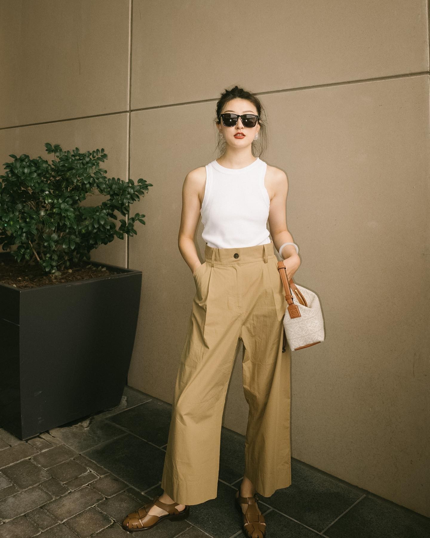 Sự gọn gàng ở phần thân trên cũng giúp cân bằng hoàn hảo với phom dáng rộng của quần, từ đó tạo hiệu ứng vóc dáng thanh thoát hơn. Bạn có thể chọn áo sát nách dáng ôm để tôn đường nét cơ thể, hoặc kiểu suông nhẹ để mang lại cảm giác thoải mái, phóng khoáng.