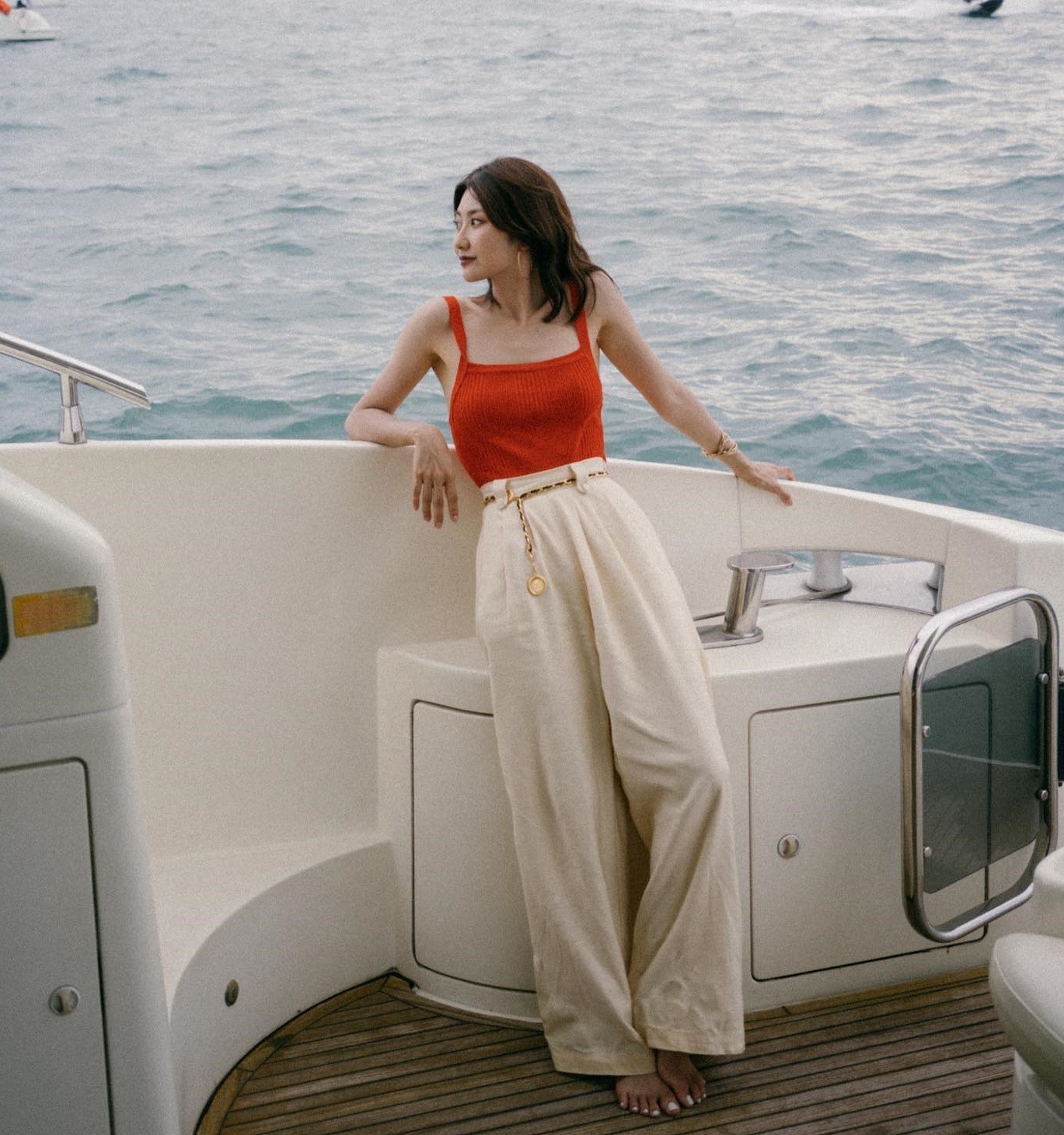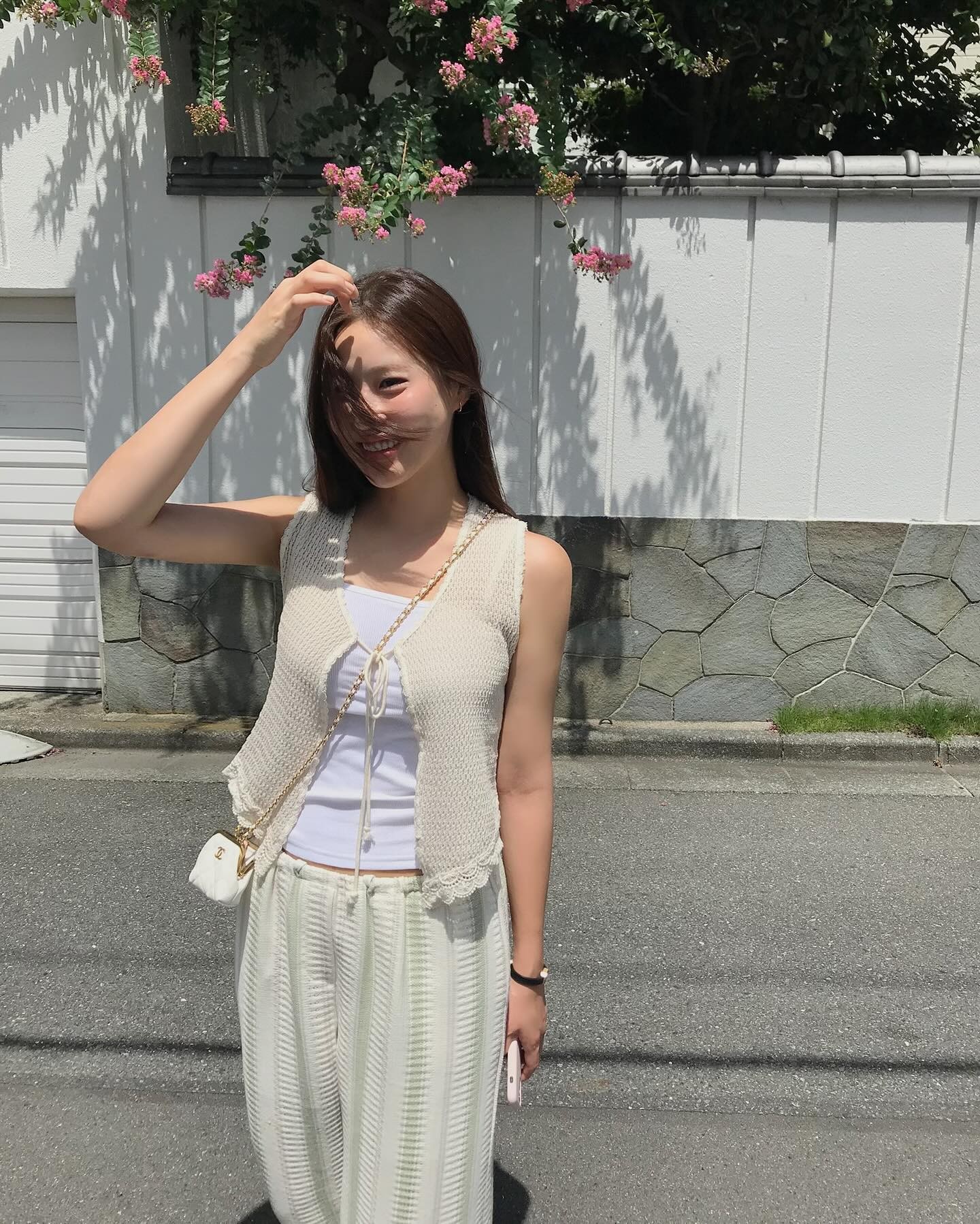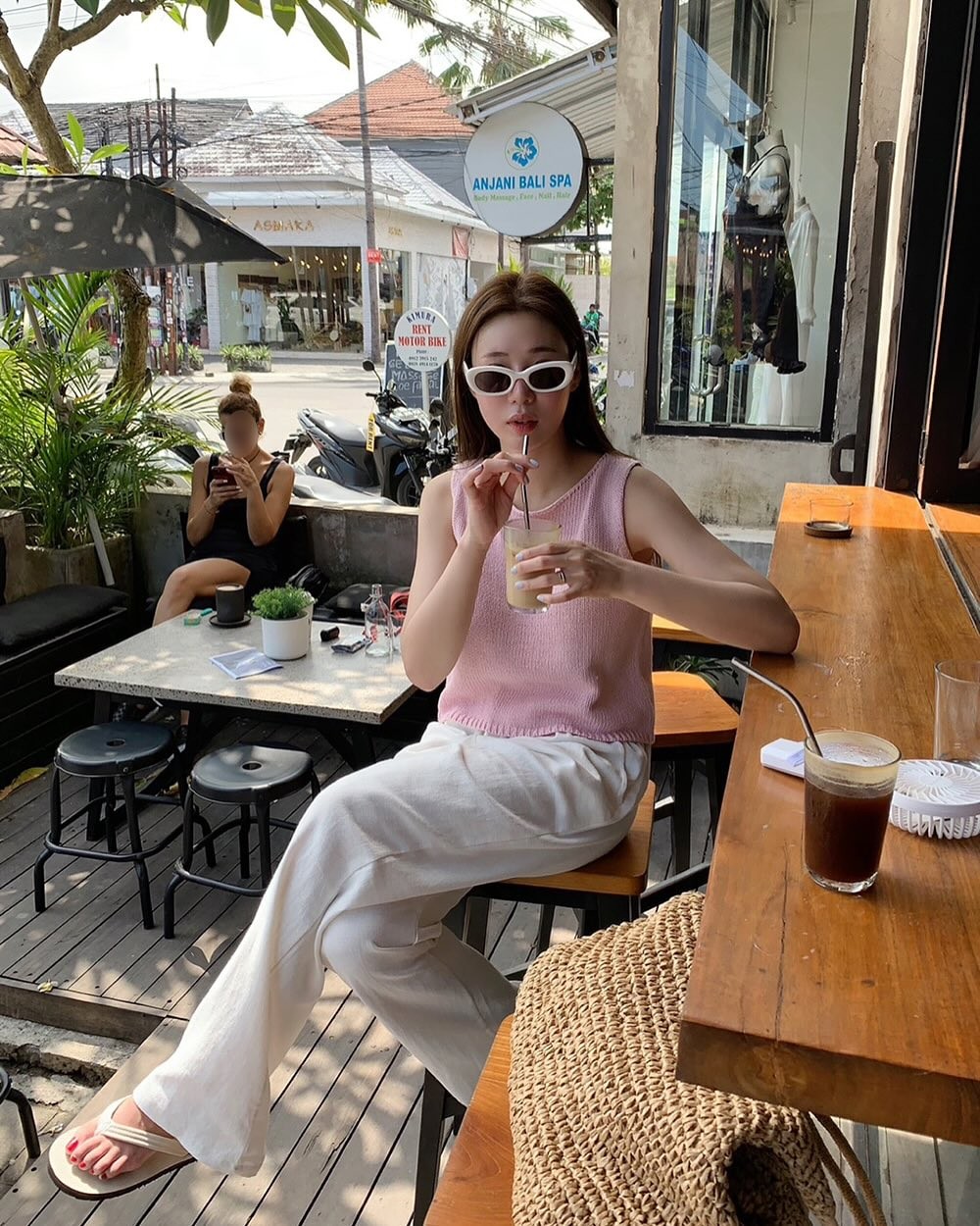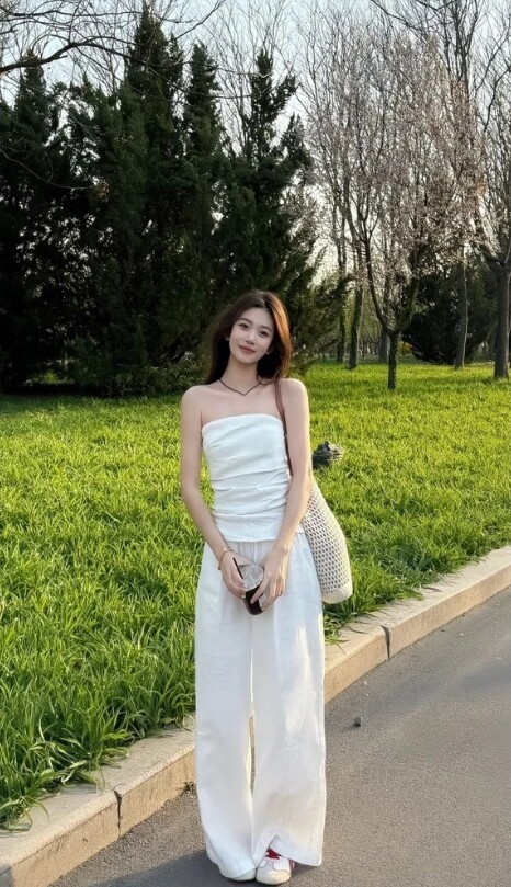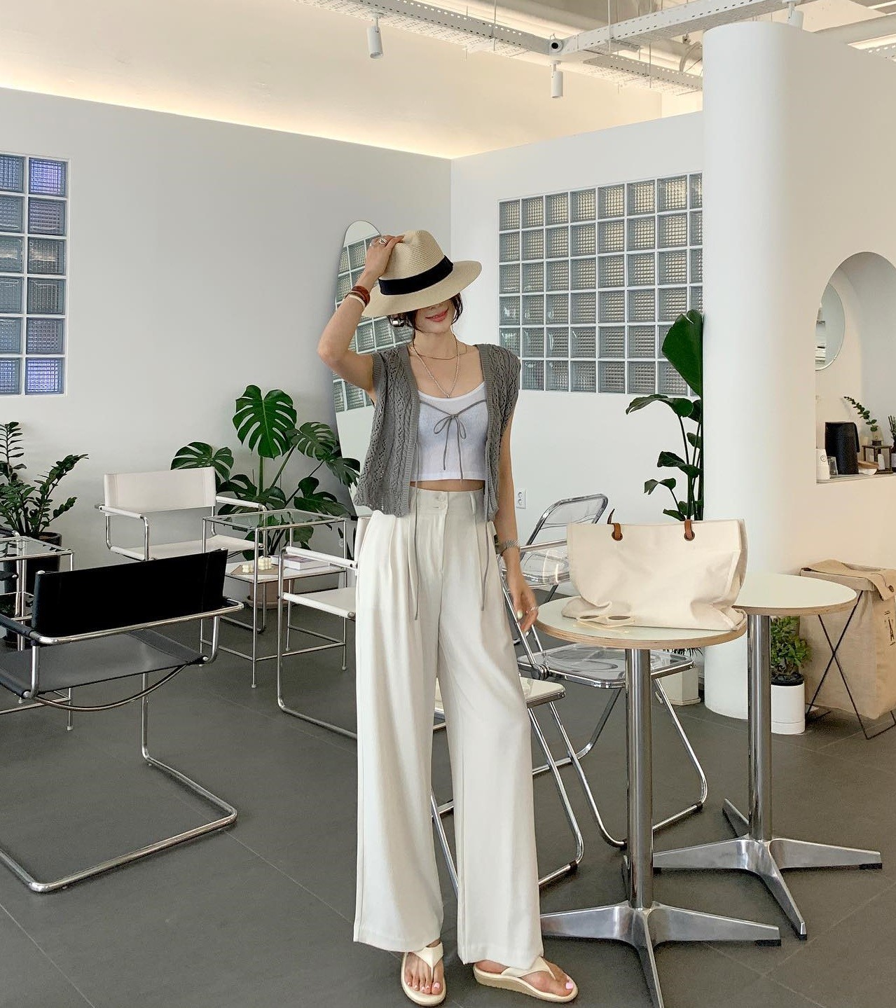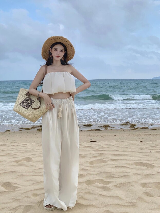 Mang đậm tinh thần mùa hè, sự kết hợp giữa quần ống rộng và áo hai dây luôn là lựa chọn lý tưởng cho những chuyến đi nắng gió. Set đồ này ghi điểm nhờ cảm giác thoáng mát, linh hoạt khi di chuyển, đồng thời vẫn toát lên nét quyến rũ vừa phải.