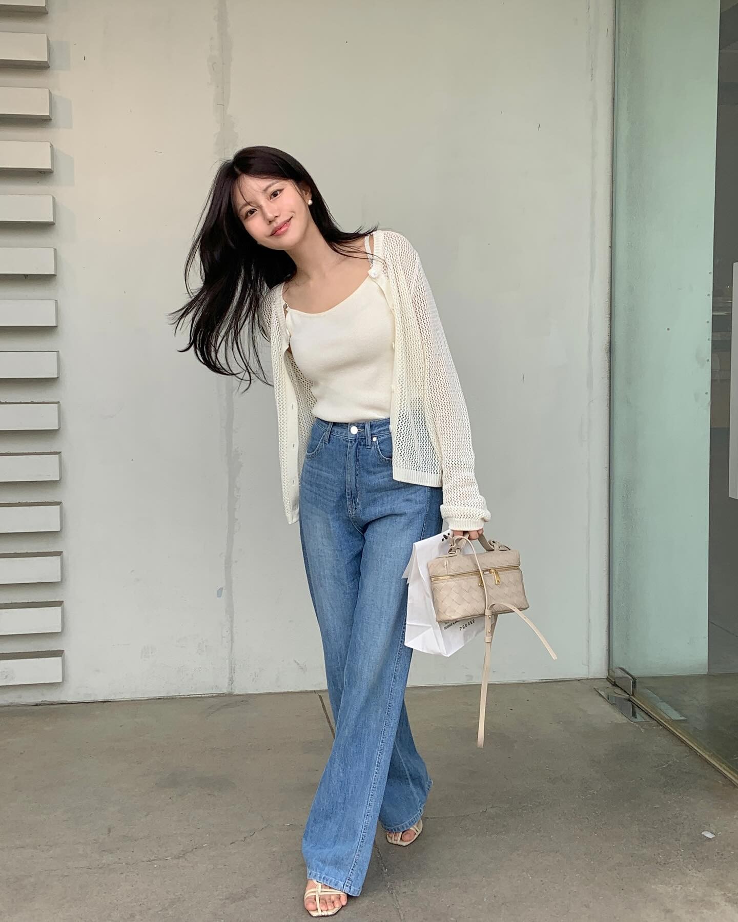 Denim tối màu, dáng suông hoặc straight-leg mang đến diện mạo trẻ trung nhưng vẫn đủ lịch sự cho môi trường làm việc linh hoạt. Khi kết hợp cùng blazer và giày mũi nhọn, item này giúp cân bằng giữa sự thoải mái và nét chuyên nghiệp cần thiết.