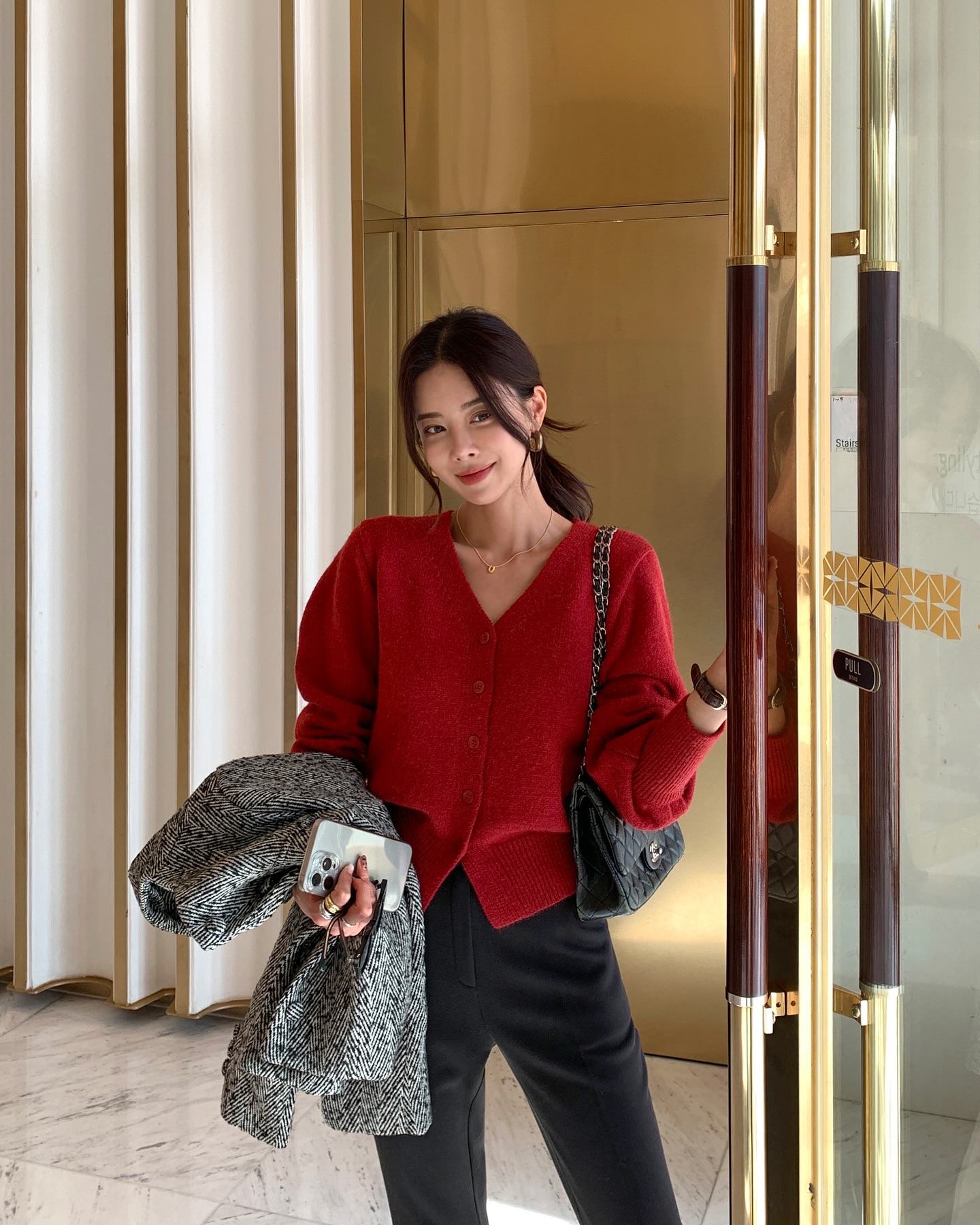 Cardigan là lựa chọn lý tưởng cho tiết trời đầu năm se lạnh. Kiểu áo này ghi điểm nhờ sự mềm mại, nhẹ nhàng và khả năng phối đồ linh hoạt. Dịp Tết, cardigan có thể khoác ngoài váy liền hoặc áo thun, áo sơ mi để tạo vẻ ngoài nền nã, dễ gần.