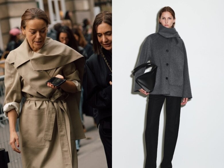 Với những dịp trang trọng hay các sự kiện buổi tối, áo khoác kiểu khăn choàng là lựa chọn khó có thể thay thế. Phom dáng choàng mềm mại, kết hợp kỹ thuật xếp lớp và độ rũ tự nhiên của chất liệu, mang đến vẻ sang trọng, quý phái mà không cần quá nhiều chi tiết cầu kỳ. Ngoài các gam màu kinh điển như đen và xám, mùa mốt năm nay chứng kiến sự lên ngôi của xanh lá đậm và đỏ rượu vang - những sắc độ giúp tổng thể trang phục thêm chiều sâu và cuốn hút. Đây là khoản đầu tư thông minh, bảo chứng cho phong thái thanh lịch xuyên suốt từ các cuộc họp ban ngày đến những buổi tiệc cocktail buổi tối.