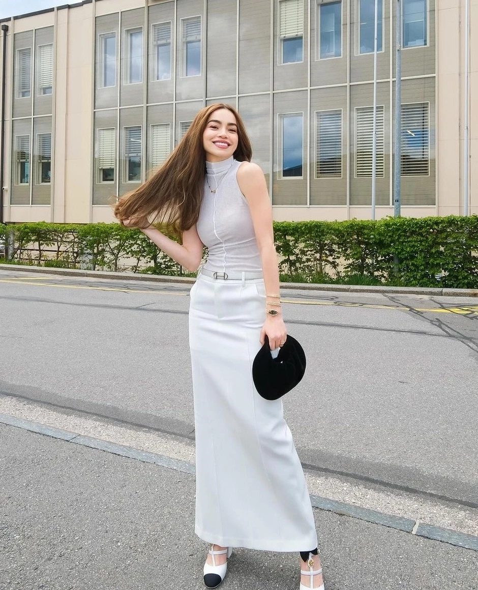 Về kiểu dáng, chân váy trắng khá đa dạng, từ chữ A, xếp ly đến dáng suông. Dù biến tấu theo phong cách nào, item này vẫn giữ được nét thanh lịch đặc trưng. Trong đó, chân váy trắng dáng dài đặc biệt được ưa chuộng để tạo hình ảnh “nàng thơ” hiện đại và tinh tế.