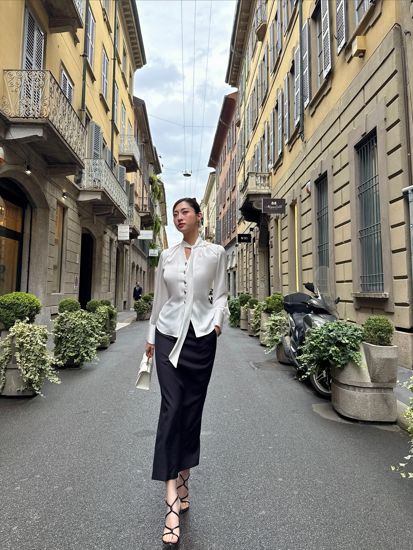 Nhờ sự linh hoạt và không bao giờ lỗi mốt, chân váy lụa trở thành item “ruột” trong phong cách effortless chic – đơn giản nhưng vẫn đủ tinh tế và thời thượng.