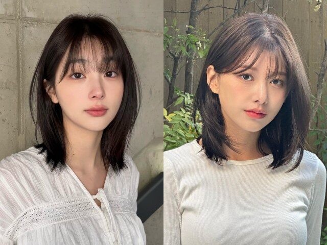 Mái thưa kết hợp tóc ngang vai giúp "hack tuổi" hiệu quả. Kiểu tóc này giúp che bớt trán cao, làm mềm gương mặt, phù hợp phong cách nữ tính, hiện đại.