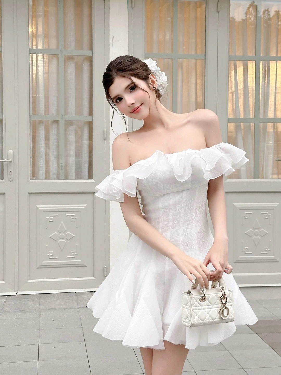 Những chiếc váy trễ vai thường có phom dáng mềm mại, kết hợp cùng chất liệu nhẹ để tạo độ bay bổng. Khi diện cùng sandal dây mảnh hoặc túi xách nhỏ, outfit trở nên rất phù hợp cho các buổi dạo phố hay kỳ nghỉ.
