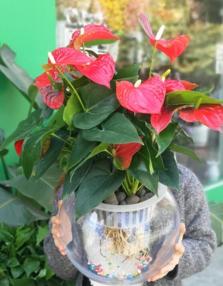 Lần đầu nhìn thấy hồng môn, nhiều người không khỏi chạm tay thử vài lần vì bề mặt hoa bóng mượt, cứng cáp, trông chẳng khác gì được làm từ nhựa.