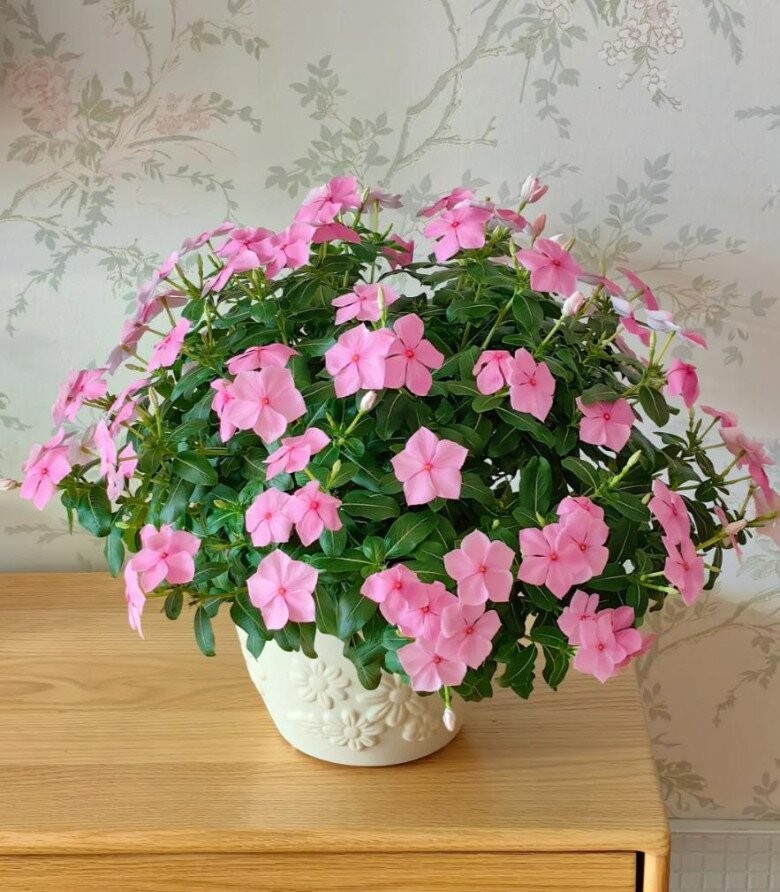 Lưu ý chăm sóc: Dừa cạn dễ mọc vươn dài, tán lộn xộn. Ngay từ khi còn là cây con, nên thường xuyên bấm ngọn (ngắt bỏ chồi non ở đỉnh) để kích thích ra nhánh bên. Càng nhiều nhánh, hoa càng sai, cuối cùng cây sẽ phát triển thành một khóm tròn đẹp mắt.