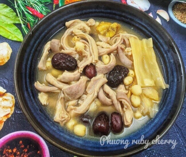 - Khi nồi dạ dày sôi, để lửa liu riu trong khoảng 35 đến 45 phút để dạ dày nhừ. Nêm gia vị cho vừa miệng, múc ra bát rồi thưởng thức.