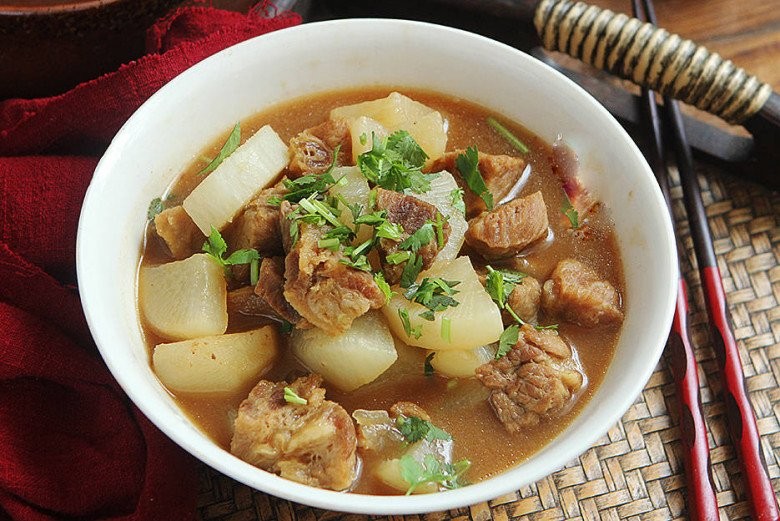 Thịt bò hầm củ cải hoàn toàn mềm ngon, củ cải ngọt, có chút đậm đà quyện lẫn gia vị cũng như thấm đẫm những tinh tuý từ thịt bò, tạo nên món ăn ngon và bổ dưỡng trong mùa thu.