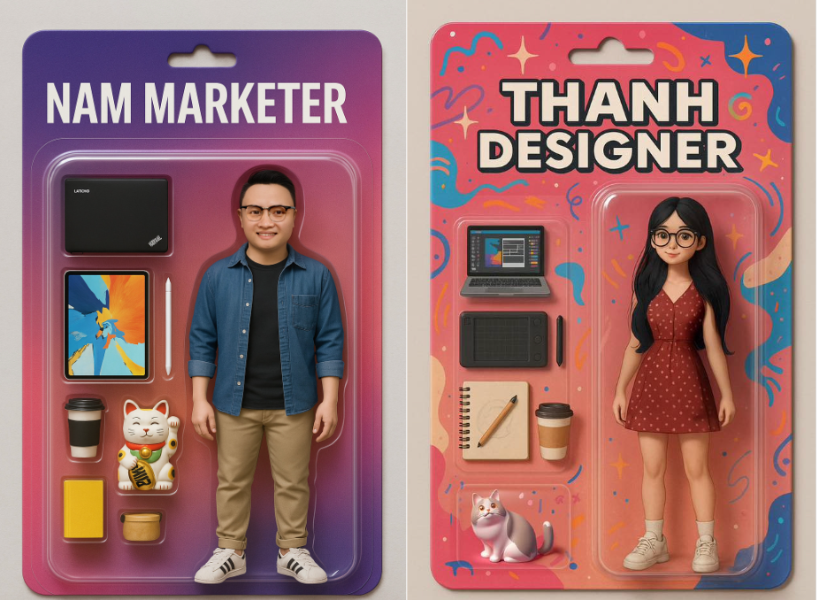 Có một trào lưu tạo ảnh độc lạ không kém là sử dụng AI để tạo hình ảnh bản thân dưới dạng mô hình đồ chơi hành động (action figure) hoàn chỉnh, đi kèm bao bì phong cách retro. Từ người làm văn phòng, sinh viên, giáo viên đến nghệ sĩ, ai cũng có thể trở thành nhân vật chính trong “chiếc vỉ” được thiết kế riêng.