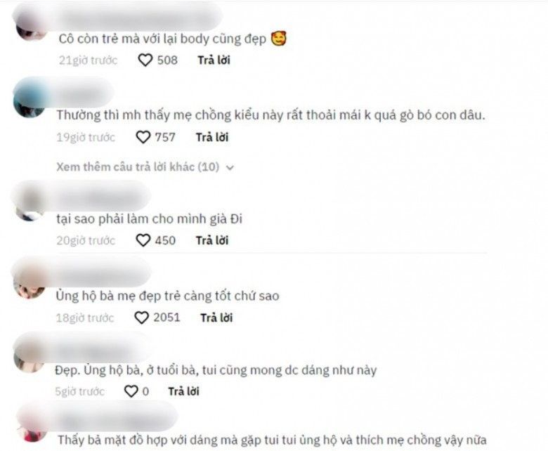 Cư dân mạng Việt lại bày tỏ quan điểm rằng, có mẹ chồng trẻ lại càng thoải mái. Set đồ của bà mặc phù hợp với dáng và mặt chứ không quá lố lăng.