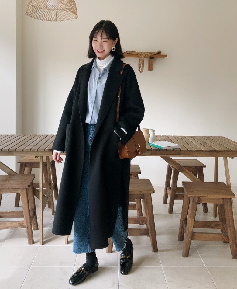 Áo khoác dài màu đen cổ vest chính là món đồ thời trang công sở mà chị em không thể thiếu để tạo nên phong cách thanh lịch, chuyên nghiệp.