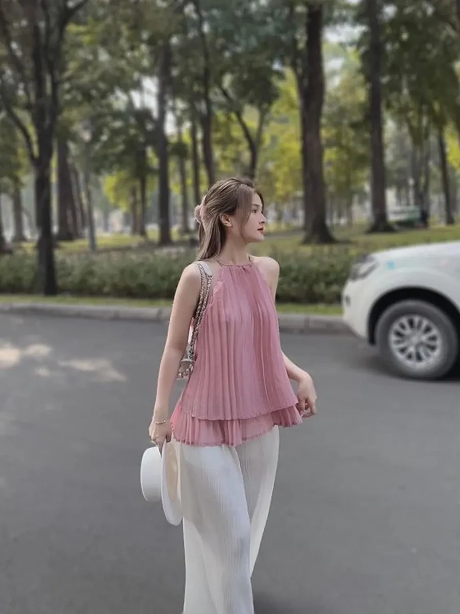 Ngày nay, áo yếm không còn bó hẹp trong những dịp đặc biệt mà được biến tấu đa dạng hơn về kiểu dáng, chất liệu – từ lụa mềm mại đến linen thoáng mát. Khi kết hợp cùng quần jeans, chân váy hay quần ống rộng, item này dễ dàng tạo nên những outfit vừa hiện đại vừa có dấu ấn riêng.
