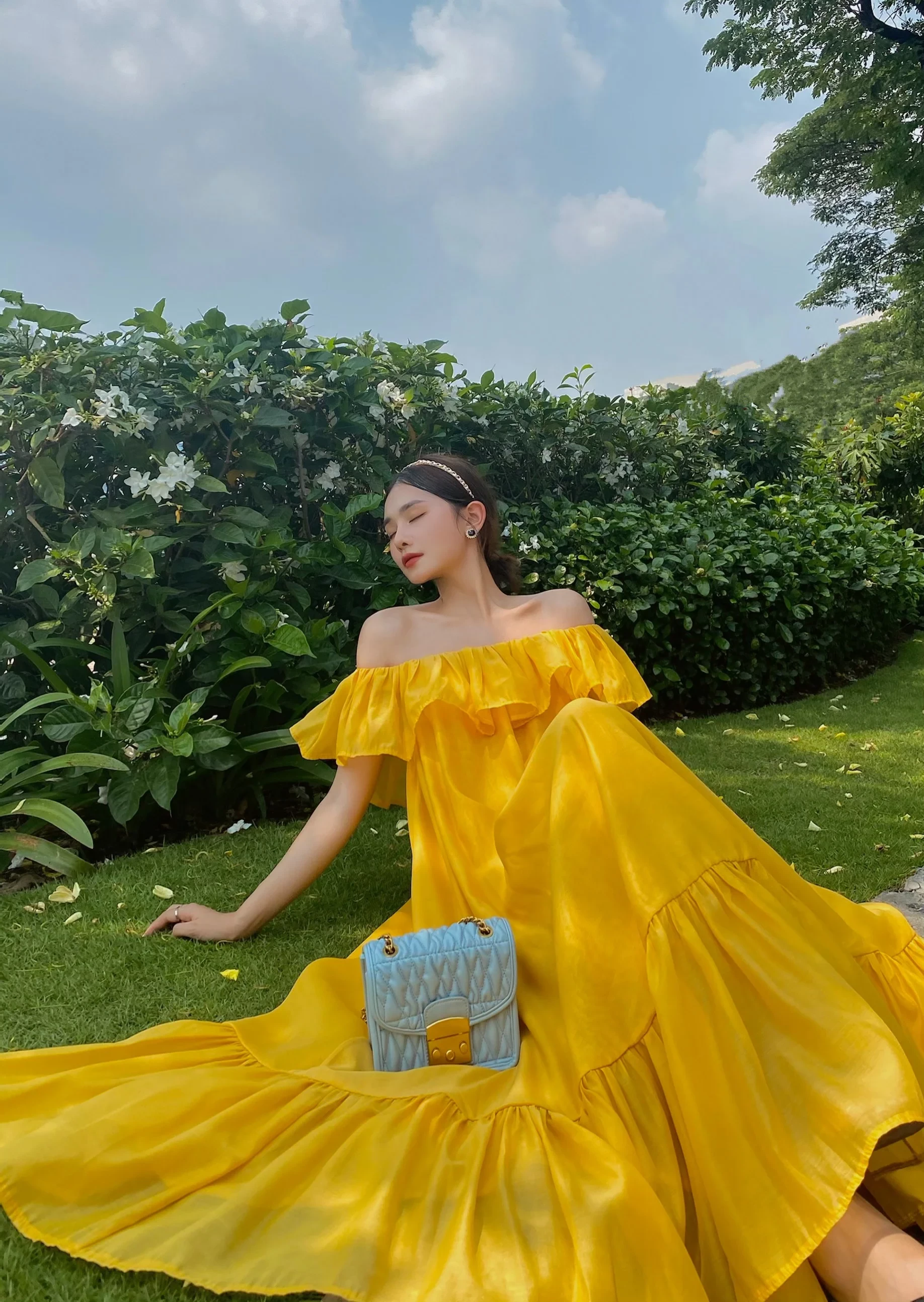 Váy trễ vai là lựa chọn hoàn hảo cho những ngày Hè muốn vừa mát mẻ vừa gợi cảm một cách tinh tế. Thiết kế khoe trọn phần vai và xương quai xanh giúp tổng thể trở nên mềm mại, nữ tính hơn mà không cần quá nhiều chi tiết cầu kỳ. Những chất liệu nhẹ như cotton, voan hay linen càng làm tăng cảm giác thoáng đãng, dễ chịu khi mặc.