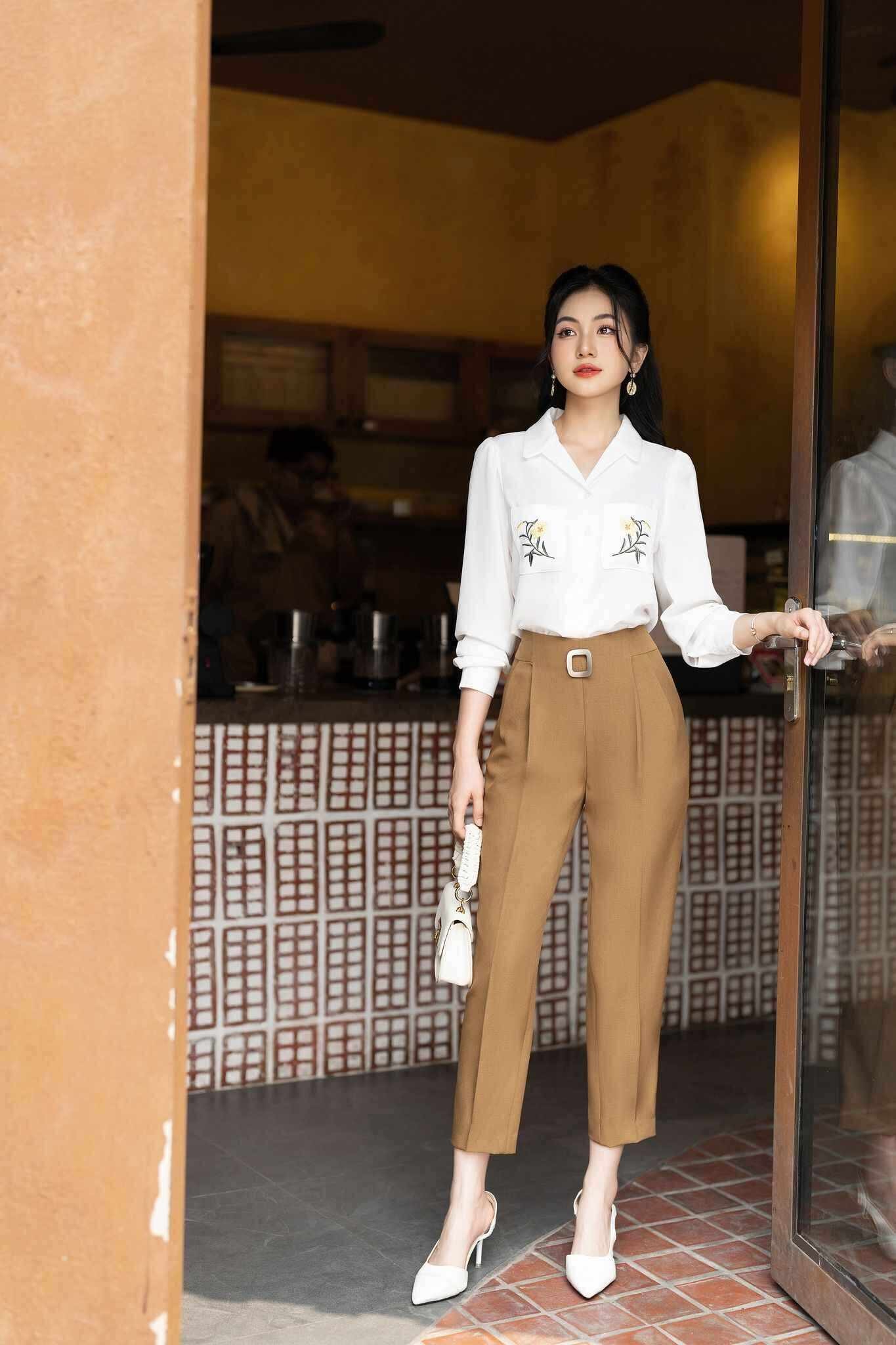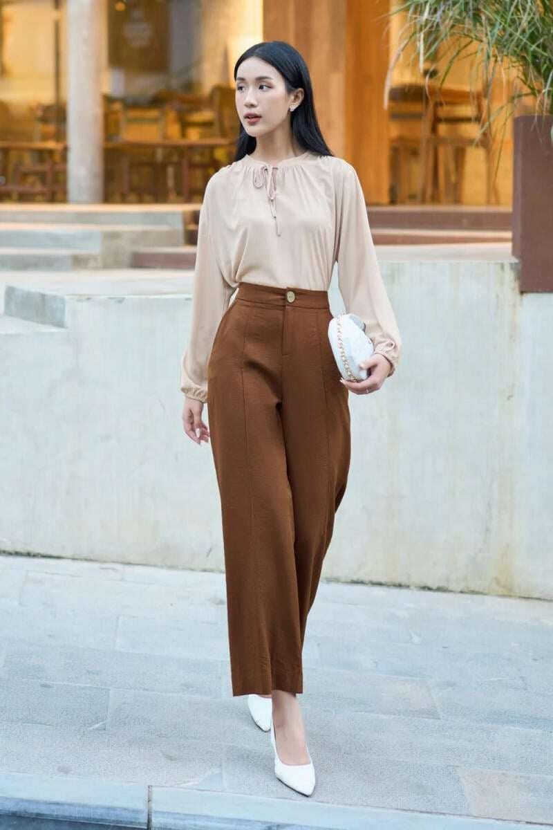 Không chỉ ghi điểm ở khả năng che khuyết điểm, quần âu ống suông còn mang đến vẻ ngoài thanh lịch và hiện đại. Bạn có thể dễ dàng kết hợp cùng áo sơ mi, blazer cho phong cách công sở chỉn chu, hoặc phối với áo thun để tạo nên set đồ tối giản nhưng vẫn tinh tế và thời trang.