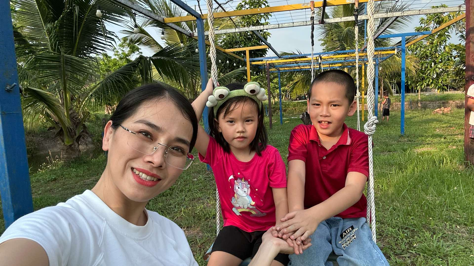 Không chỉ dạy con qua những bài tập, chị còn chủ động tạo ra nhiều hoạt động để tăng sự kết nối. Chị tự làm thẻ hình để dạy con nhận biết, cho con tham gia vào việc nấu những món ăn bé thích, cùng con đạp xe, đi bơi, đi bộ hay sang nhà bạn chơi. Chị cũng tạo môi trường giao tiếp riêng để khuyến khích con nói, giúp con dần hình thành nhu cầu tương tác với người khác.