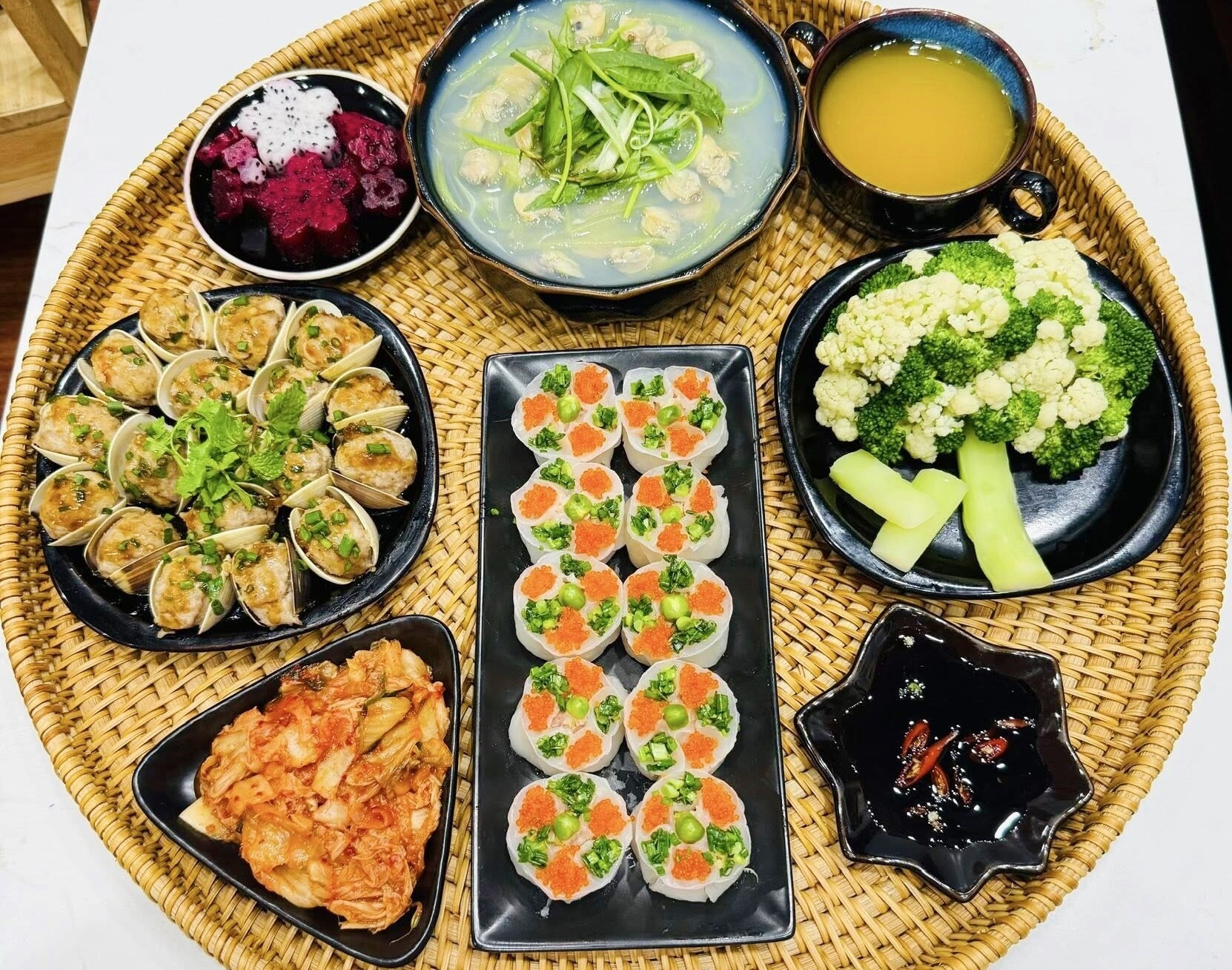 Không dừng lại ở việc nấu ăn ngon, chị Tươi còn dành nhiều tâm huyết cho cách bày biện mâm cơm. Chị thường tham khảo các trang nấu ăn trên mạng, rồi khéo léo kết hợp với ý tưởng riêng để tạo nên những mâm cơm vừa đẹp mắt, vừa gần gũi. Theo chị, một mâm cơm được bày biện đẹp không đơn thuần là hình thức, mà còn thể hiện sự chăm chút và tình cảm của người nấu dành cho những người thân yêu trong gia đình.