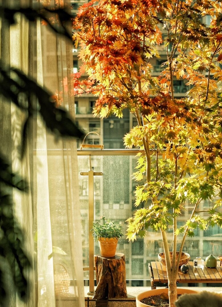 Một cô gái 9X ở Tứ Xuyên ấy đã dùng một cây phong nhỏ để “chống đỡ” cả vẻ đẹp của ban công. Chỉ cần liếc nhìn một lần thôi, ai cũng thấy tâm hồn như được vỗ về. “Giữa không gian tươi mát ấy, ngồi dưới tán phong, ngắm những chiếc lá đỏ rực rỡ hơn cả hoa, nhìn mây trắng trôi lững lờ trên bầu trời, cuộc sống bỗng trở nên yên bình và thi vị đến lạ”, 9X nói.