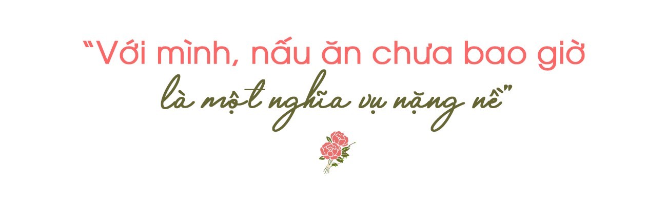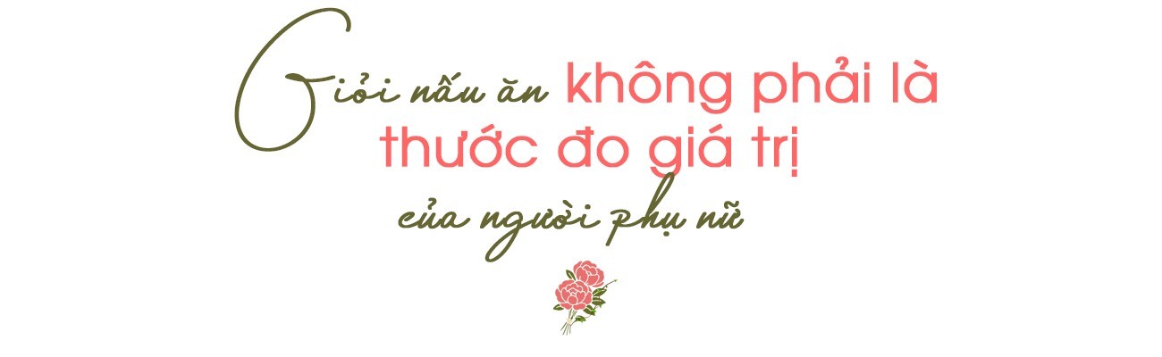 Chị tâm sự rằng, với chị, khả năng bếp núc chưa bao giờ là "thước đo" duy nhất để định nghĩa phẩm chất hay giá trị của một người phụ nữ. Trong nhịp sống hôm nay, mỗi người đều có quyền tự do lựa chọn tỏa sáng theo cách riêng; nếu không giỏi nấu nướng, họ hoàn toàn có thể khẳng định mình ở những lĩnh vực khác.