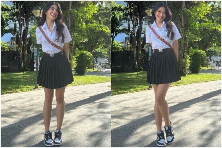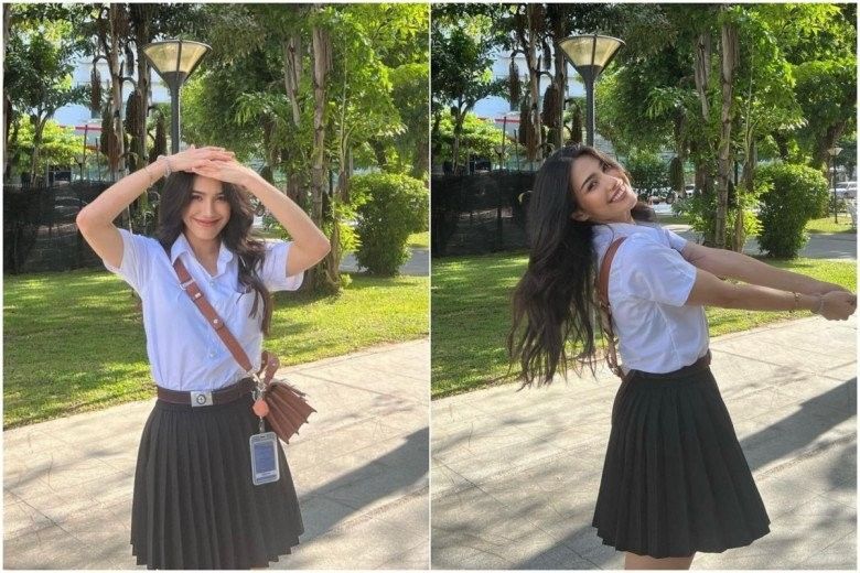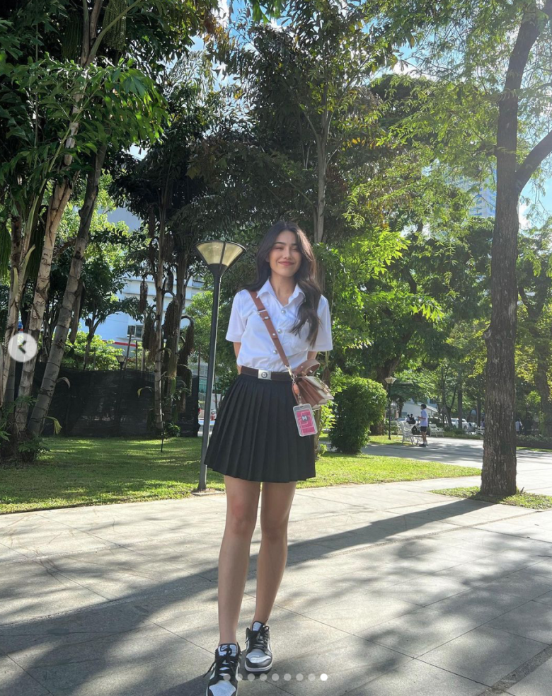 Cô nàng còn phối cùng combo phụ kiện sành điệu là đôi sneakers ton-sur-ton trang phục và túi đeo chéo để nâng tầm tổng thể thêm phần "nịnh mắt", thời thượng. Nhờ đó mà dân tình đều gọi tên mỹ nhân 2X là "nữ thần học đường" xứ Thái.