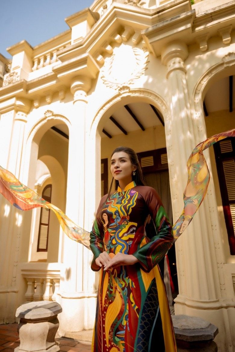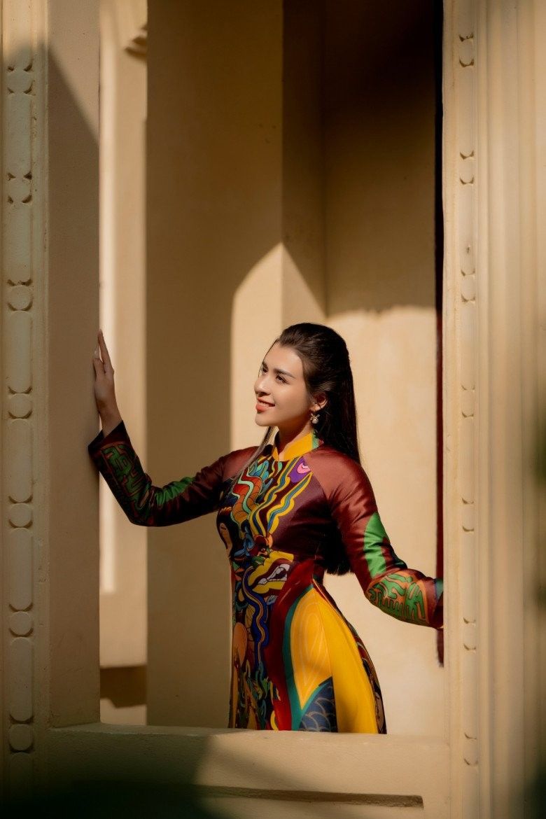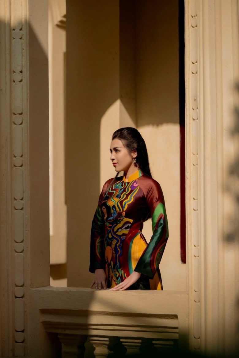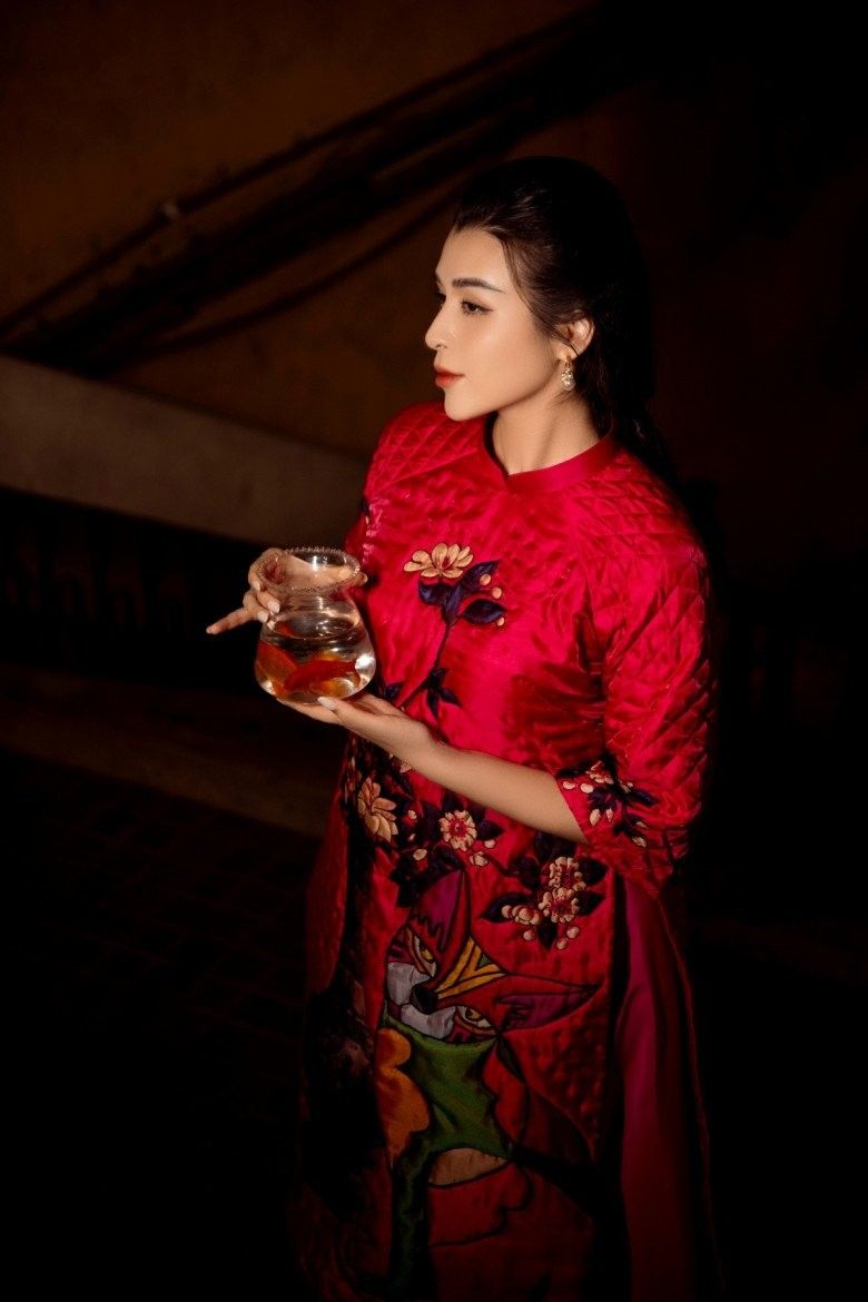Nhân dịp Tết Nguyên đán, nàng Á hậu với vẻ đẹp lai 2 dòng màu Việt - Mỹ Hoàng Thùy Anh đã thực hiện một bộ ảnh với tà áo dài truyền thống. Cô chọn 2 bộ áo dài lấy cảm hứng từ hình tượng tiên nữ trong tinh hoa mỹ thuật Việt truyền thống và 1 mẫu áo dài cách tân mang dáng vẻ vừa hiện đại, vừa cổ điển, được làm từ thủ pháp chần bông.