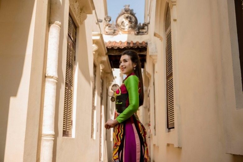 Bởi vậy, trong những ngày cuối năm, người đẹp đã dành trọn thời gian để chụp một bộ ảnh với áo dài ở những không gian mang đậm bản sắc Hà thành.