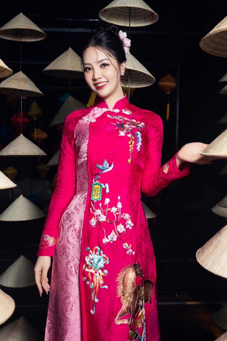 Mỗi tà áo dài mà nữ MC kỳ cựu lựa chọn đều được thêu tay thủ công trên nền lụa cao cấp.