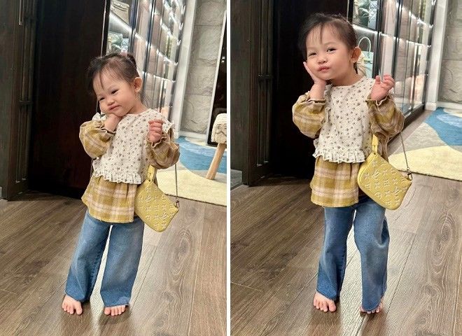Bản thân nhóc tỳ Suchin có lẽ được mẹ chăm chút phong cách từ sớm, lại là "con nhà tông" nên cũng đã sớm chứng minh thần thái chẳng thua mẫu nhí của mình.