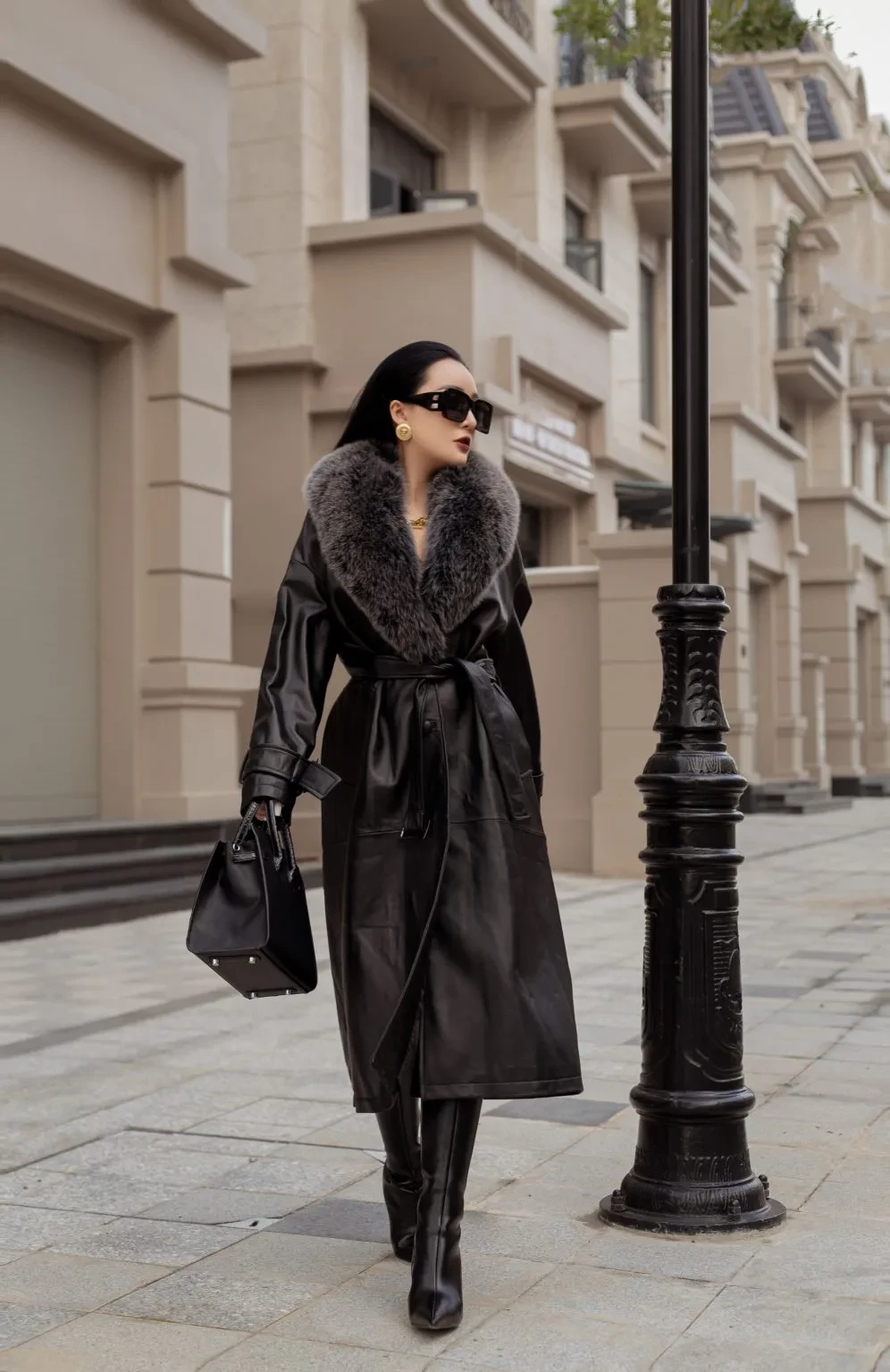 Bằng cách kết hợp lông mềm mại ở cổ áo, lớp lót hoặc dọc theo các đường may, sự thô ráp và lạnh lẽo của da được cân bằng một cách khéo léo. Phom dáng thanh lịch và bề mặt da cao cấp vẫn được giữ nguyên, tạo nên vẻ ngoài sang trọng, sắc sảo. Trong khi đó, lông thú đóng vai trò làm dịu, xóa đi cảm giác lạnh và cứng, mang lại sự dễ chịu khi mặc. Nhờ đó, tổng thể trở nên dễ tiếp cận hơn, vừa ấm áp về mặt cảm giác, vừa mềm mại hơn về mặt thị giác.