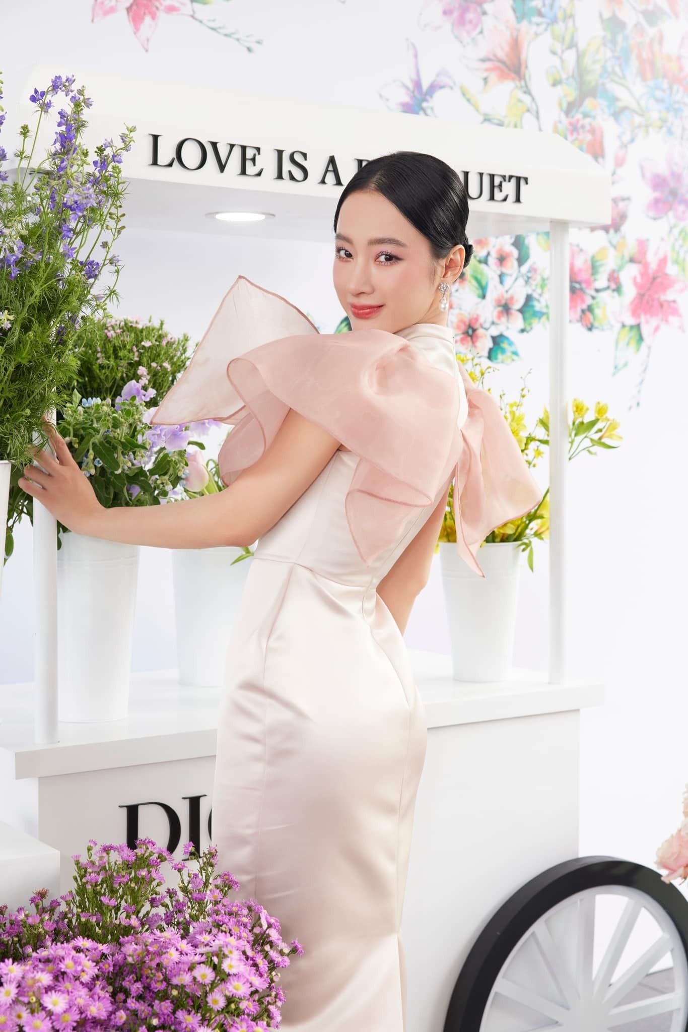 Điều làm cho các trang phục của nàng Trinh trở nên đặc biệt còn là các thiết kế phụ kiện đi kèm. "Bà hoàng của những chiếc mũ" nay còn điểm danh cả hoa tươi.