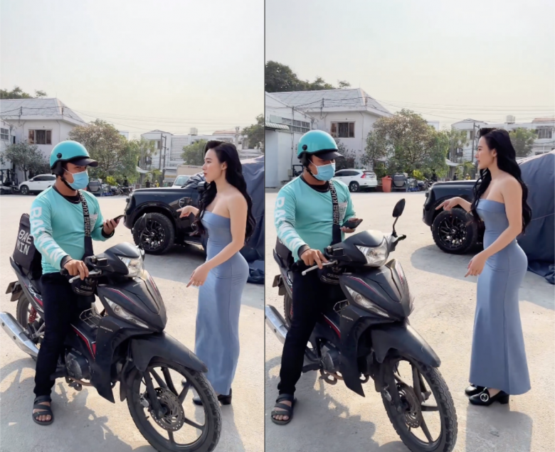 Clip thực hiện diễn vui nhưng khoảnh khắc cô mặc đẹp, gợi cảm này đứng nói chuyện với shipper giao đồ ăn khiến anh chàng bối rối gây thú vị bậc nhất.