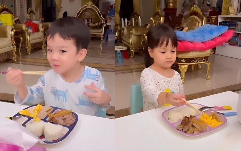 XEM VIDEO: 2 con của Đỗ Quang Vinh biểu cảm cực đáng yêu khi gắp thức ăn bằng đũa.