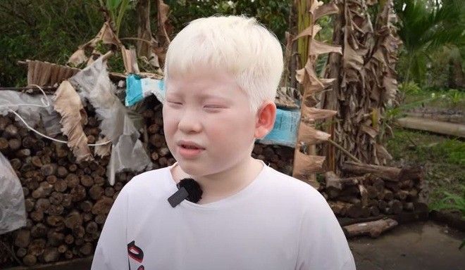 Cậu bé 12 tuổi mắc bệnh bạch tạng vừa dứt lời, người phụ nữ ngoài 60 tuổi – bà của Kỳ Long lên tiếng: “Thằng nhỏ tự ti về bản thân nên chẳng bao giờ nói to cả. Nó lúc nào cũng lí nha lí nhí như thế ấy. Ba mẹ nó phải lên Bình Dương làm công nhân, không thể đưa nó đi được nên để ở lại cho tôi tiện bề chăm sóc.