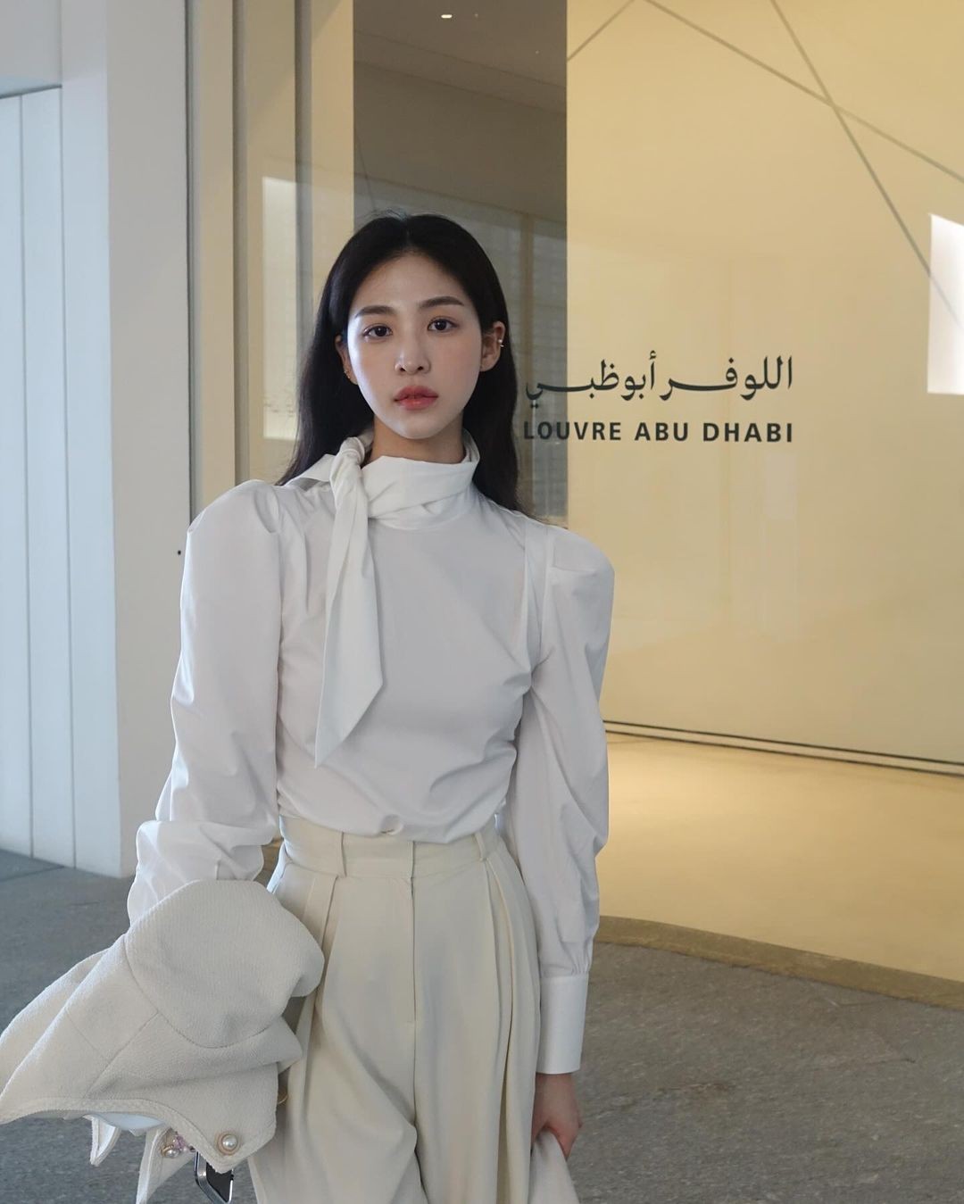 Quần trắng là item có khả năng nâng tầm trang phục cực tốt nếu được chọn đúng chất liệu và phom dáng. Khi kết hợp với áo dài tay, quần trắng giúp tổng thể trở nên sáng sủa, tinh tế và mang hơi hướng hiện đại. Đây là cách phối đặc biệt phù hợp với những chị em yêu thích phong cách tối giản nhưng vẫn muốn tạo điểm nhấn.