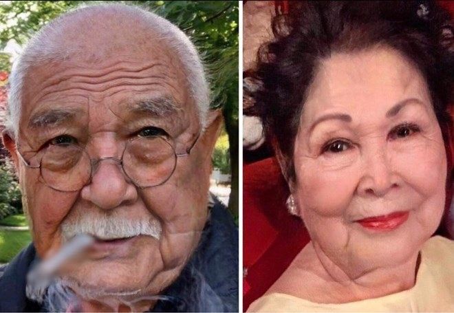 Đặc biệt, nam tài tử còn đính kèm hình ảnh hiện tại lẫn hình ảnh "tương lai" của vợ chồng mình. Nhờ một ứng dụng chỉnh sửa khuôn mặt, Hồng Vân và Lê Tuấn Anh trở thành ông lão, bà lão già nhăn nheo nhưng diện mạo đẹp lão của 2 người gây thích thú.