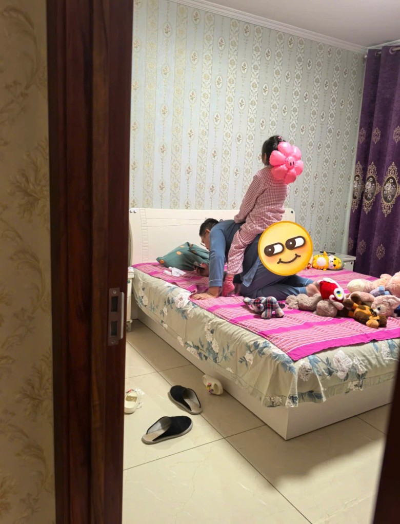 Theo chia sẻ từ tài khoản Hoa Lan được cho là người mẹ ở Hà Bắc, Trung Quốc cho thấy bức ảnh chụp chồng đang làm con ngựa cho con gái 6 tuổi cưỡi trên lưng. Khung cảnh ấm áp khi hai bố con đang chơi trong phòng ngủ được tiết lộ là do chính bà nội của đứa trẻ chụp lại và gửi cho Hoa Lan đang không có mặt ở nhà lúc đó.